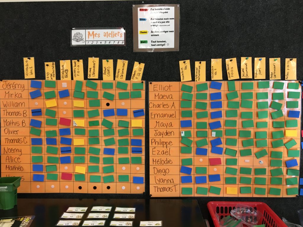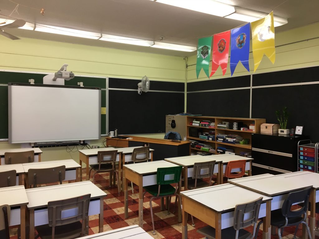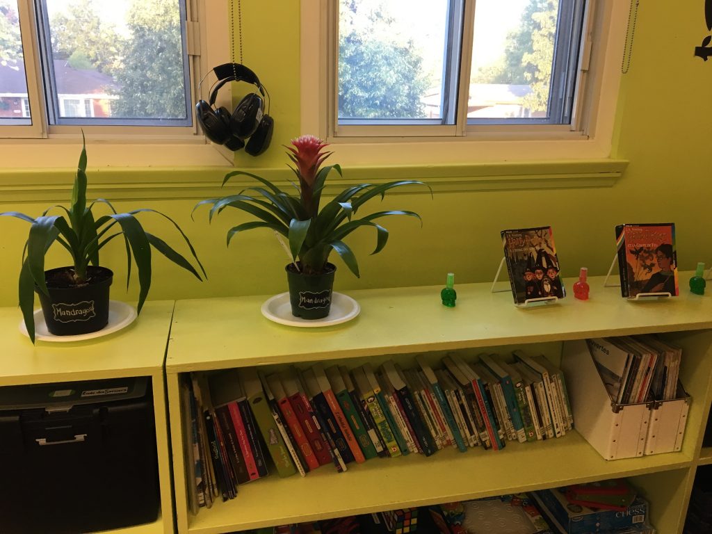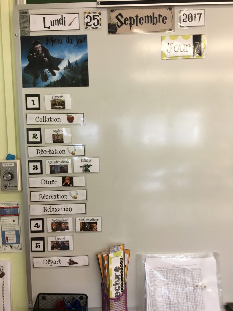 Bienvenue dans notre merveilleuse classe. Nous allons vous montrer plusieurs photos de la plateforme 9 et 3/4. Regardez le magnifique monde où votre enfant va terminer son primaire! Vous verrez, l’univers d’Harry Potter se retrouve partout dans notre classe.